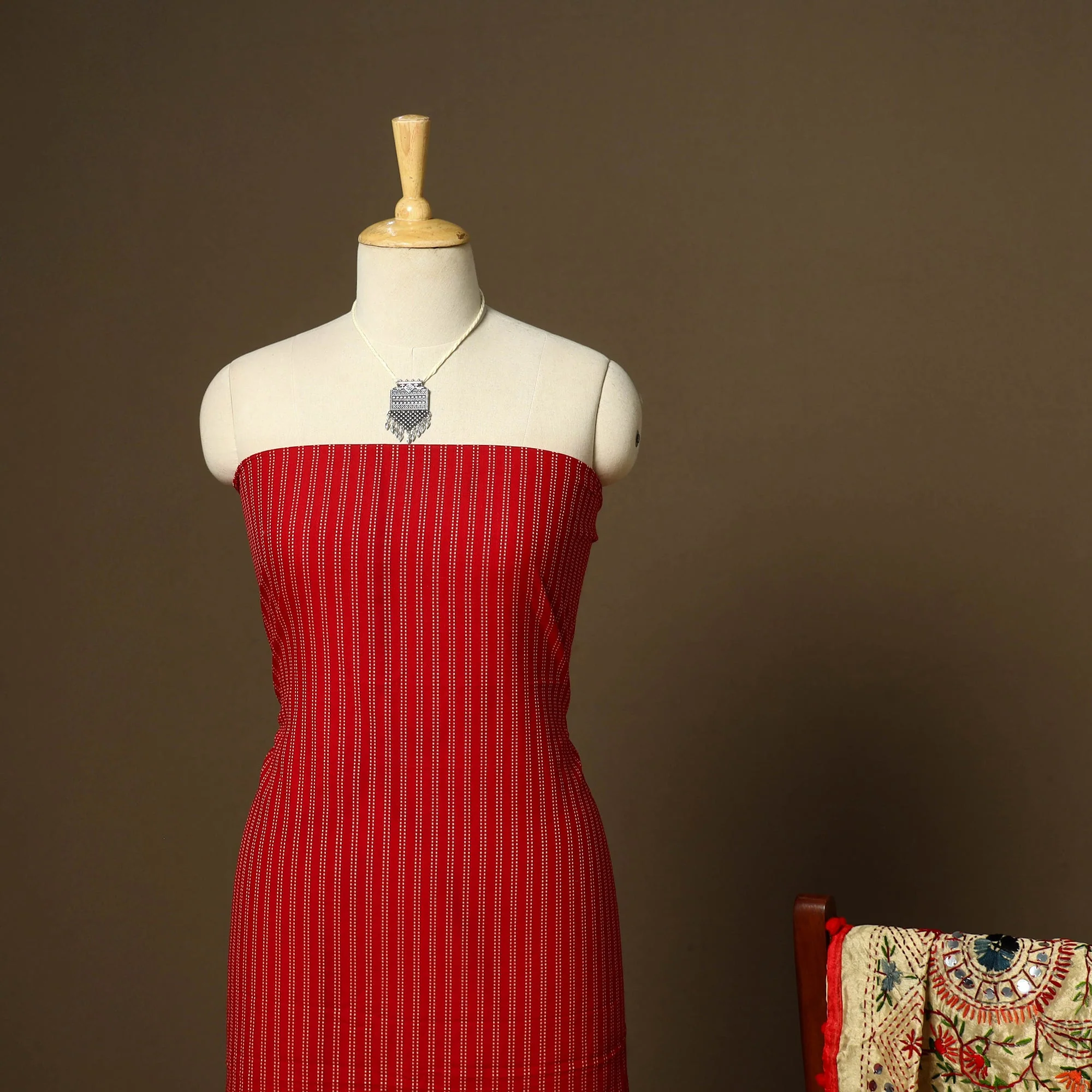 Red - 2pc Cotton Unstitched Jacquard Dress Material with Jewellery Set 39