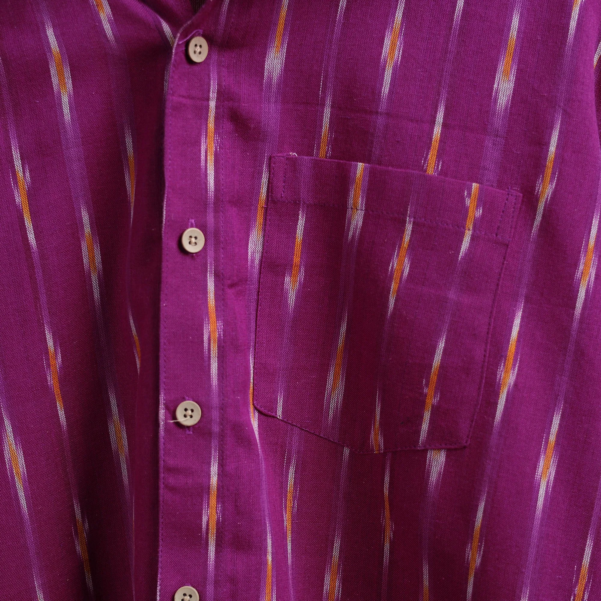 Purple - Full Sleeve Cotton Men Pochampally Ikat Shirt 15