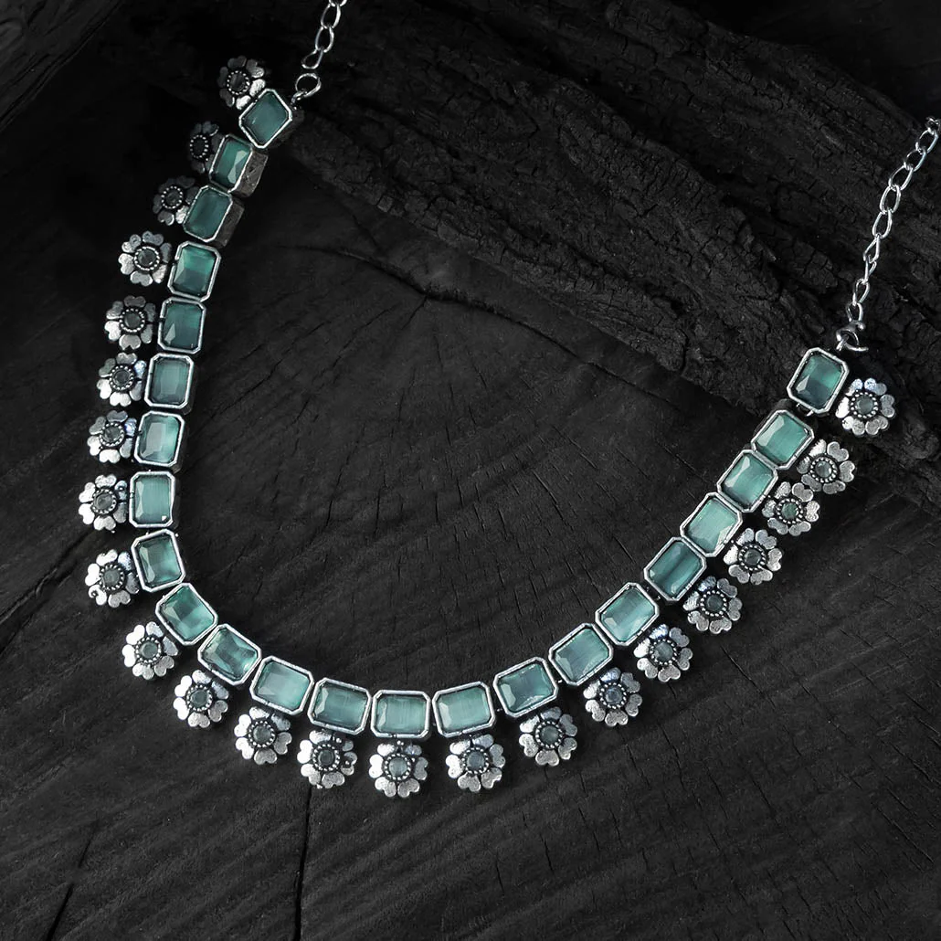Sea Green - Saanjh Bela Blossom Oxidised Necklace Set